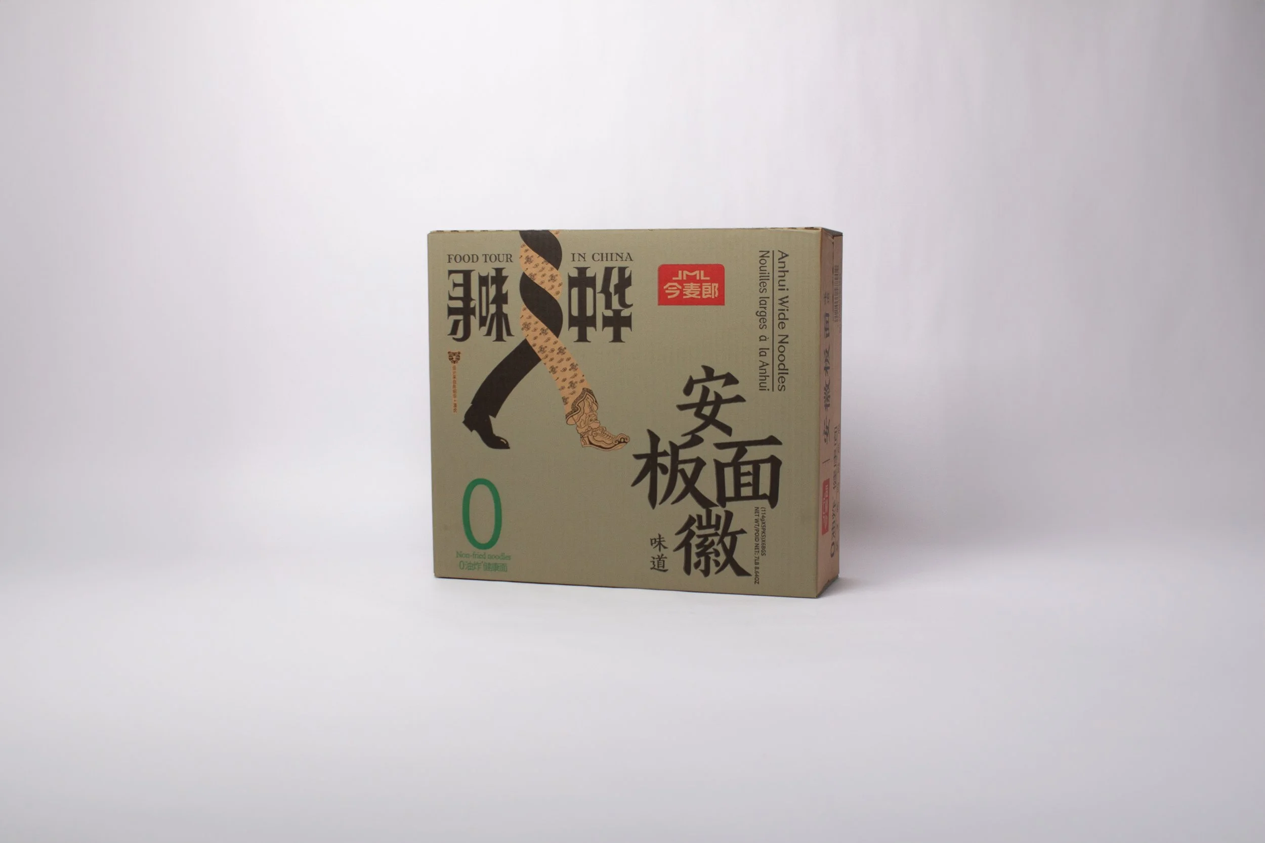JML’s An Hui Wide Noodles, part of the "Food Tour in China" series, are inspired by Anhui province’s traditional "board" noodles. The noodles are steamed to partially cook them, allowing for quick preparation in just two minutes. Paired with a spicy beef soup, this dish brings the taste of Anhui’s cuisine into your home.